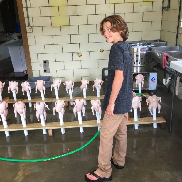 Somehow the kids all ended up in our bed last night watching the Olympics on our small bedroom tv. In between the races, we were all laughing and realizing how much happened in our weekend. When the finally went to bed, my husband and I reminisced about our wonderful family filled farm weekend. Our weekend began early Saturday with prepping for chicken processing. All the kids are involved, plus a few extra friends that we appreciate so much.